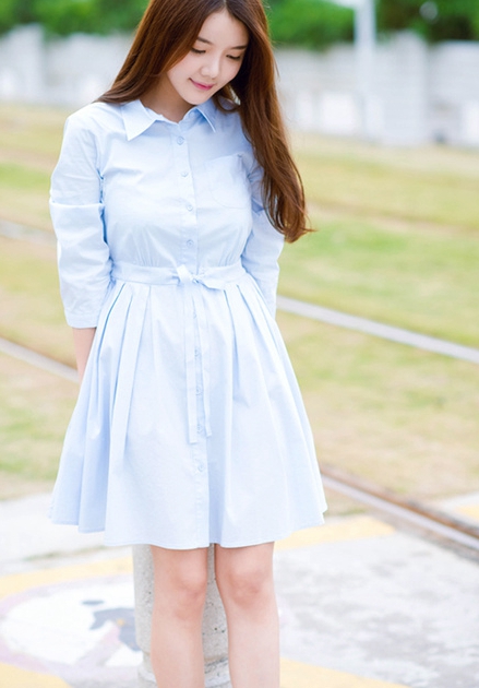 短发美少女白色连衣裙苗条身材白嫩肌肤写真