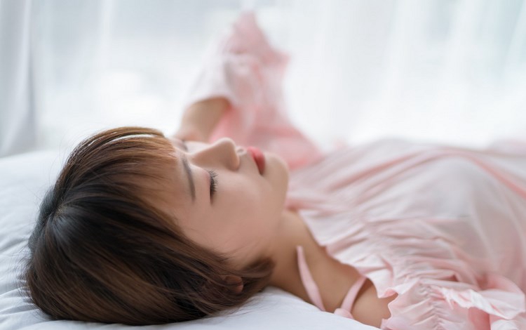 马尾少女酥胸美腿吊带睡衣香艳性