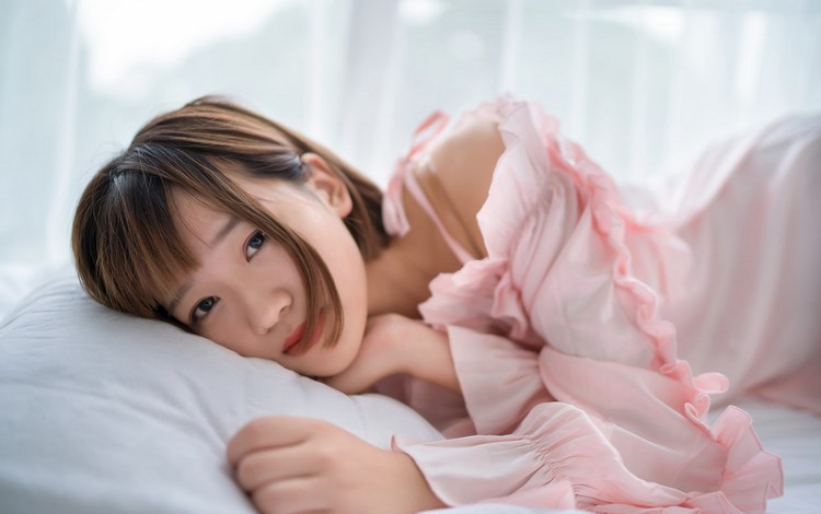 女神脸红穿性感内衣床上写真