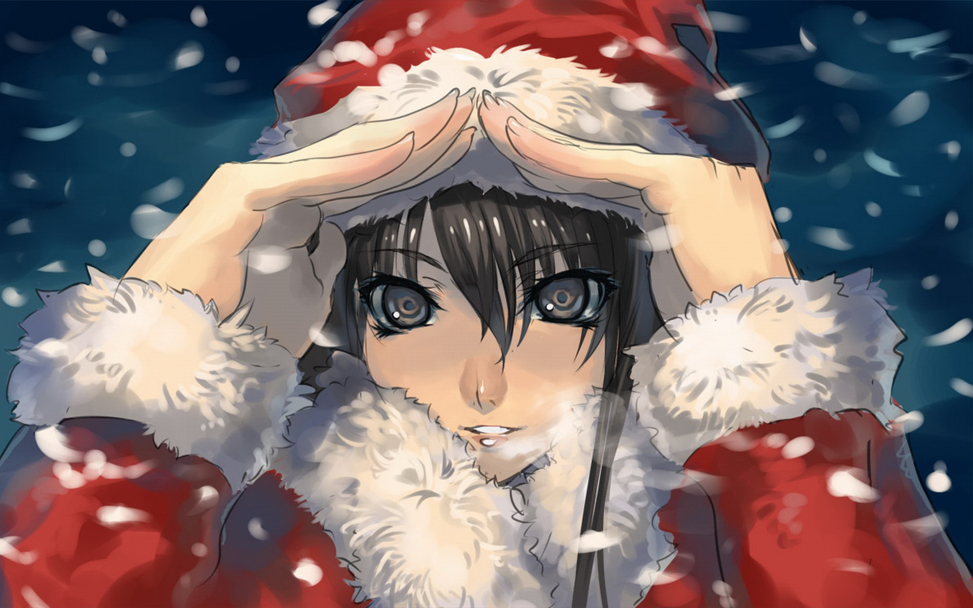 圣诞红色喜庆动漫美少女壁纸图片