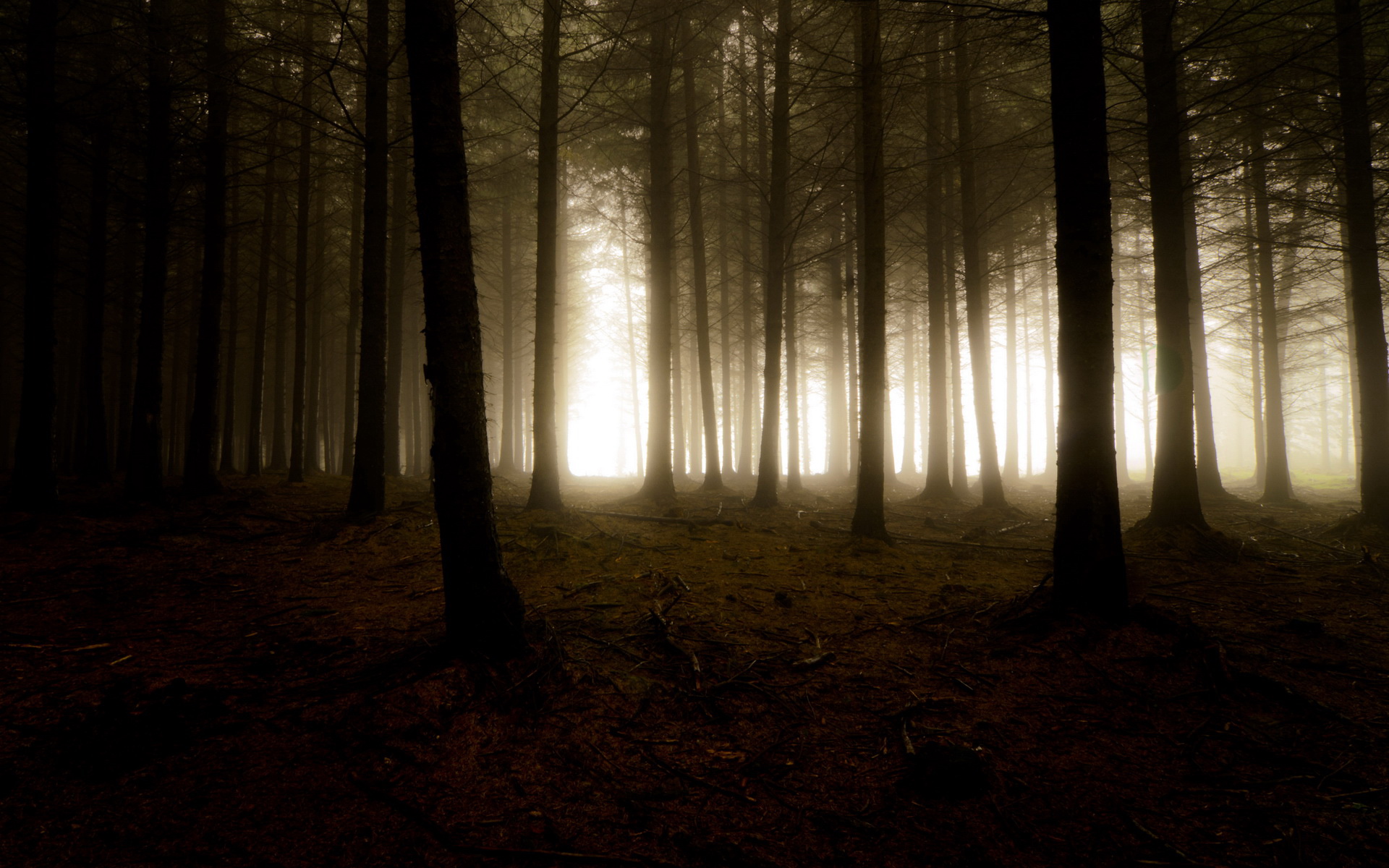 迷雾中的森林朦胧梦幻自然风景桌面壁纸
