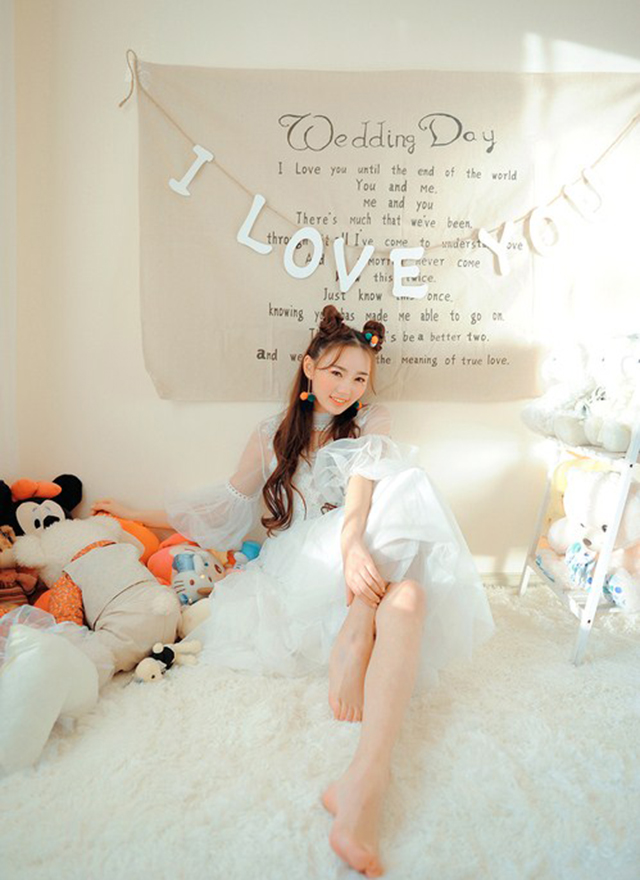 红唇卷发美女低胸开叉长裙性感火辣私拍