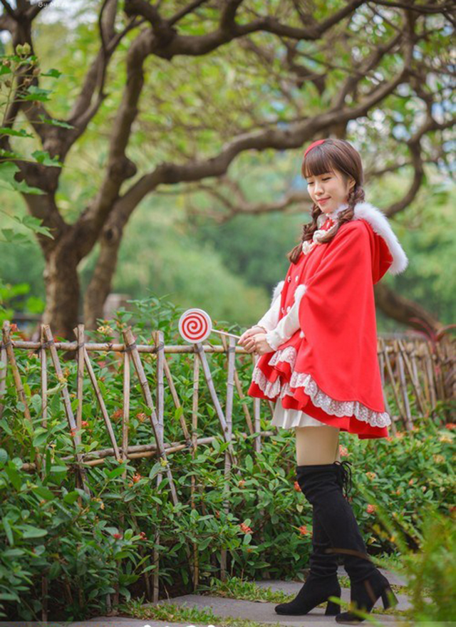 红唇卷发美女低胸开叉长裙性感火辣私拍