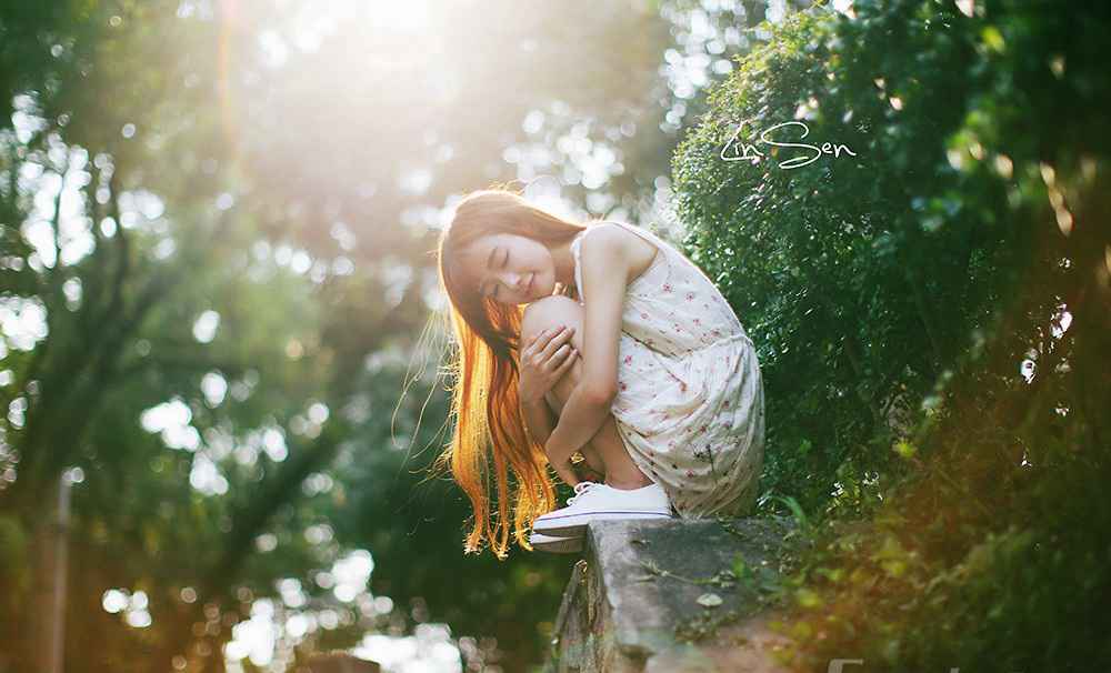 粉嫩娇羞美女橘色蕾丝裙性感美腿
