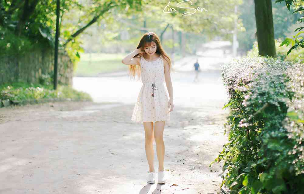 粉嫩娇羞美女橘色蕾丝裙性感美腿