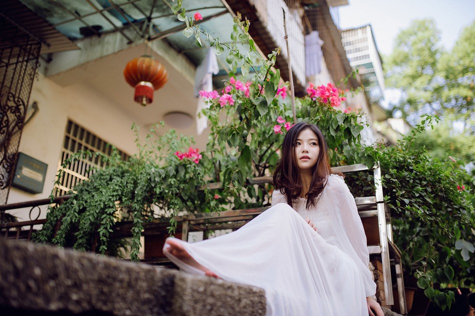 甜美女孩吊带短裙白丝美腿清纯写真