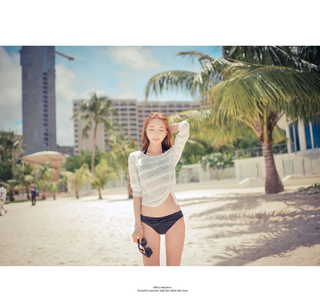 韩国泳装少女海边大秀迷人大胸翘臀