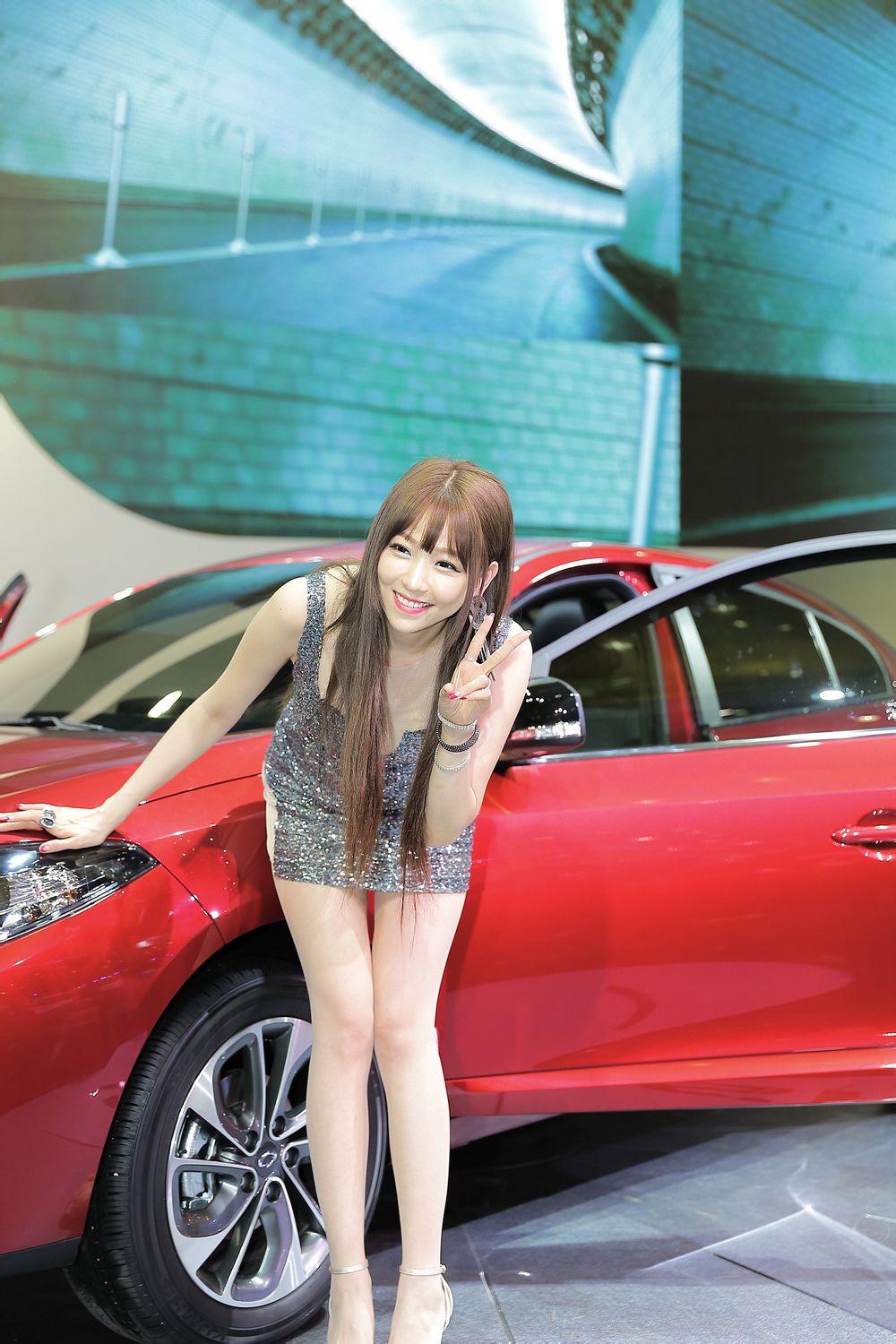 车展美艳红裙车模性感靓丽图集