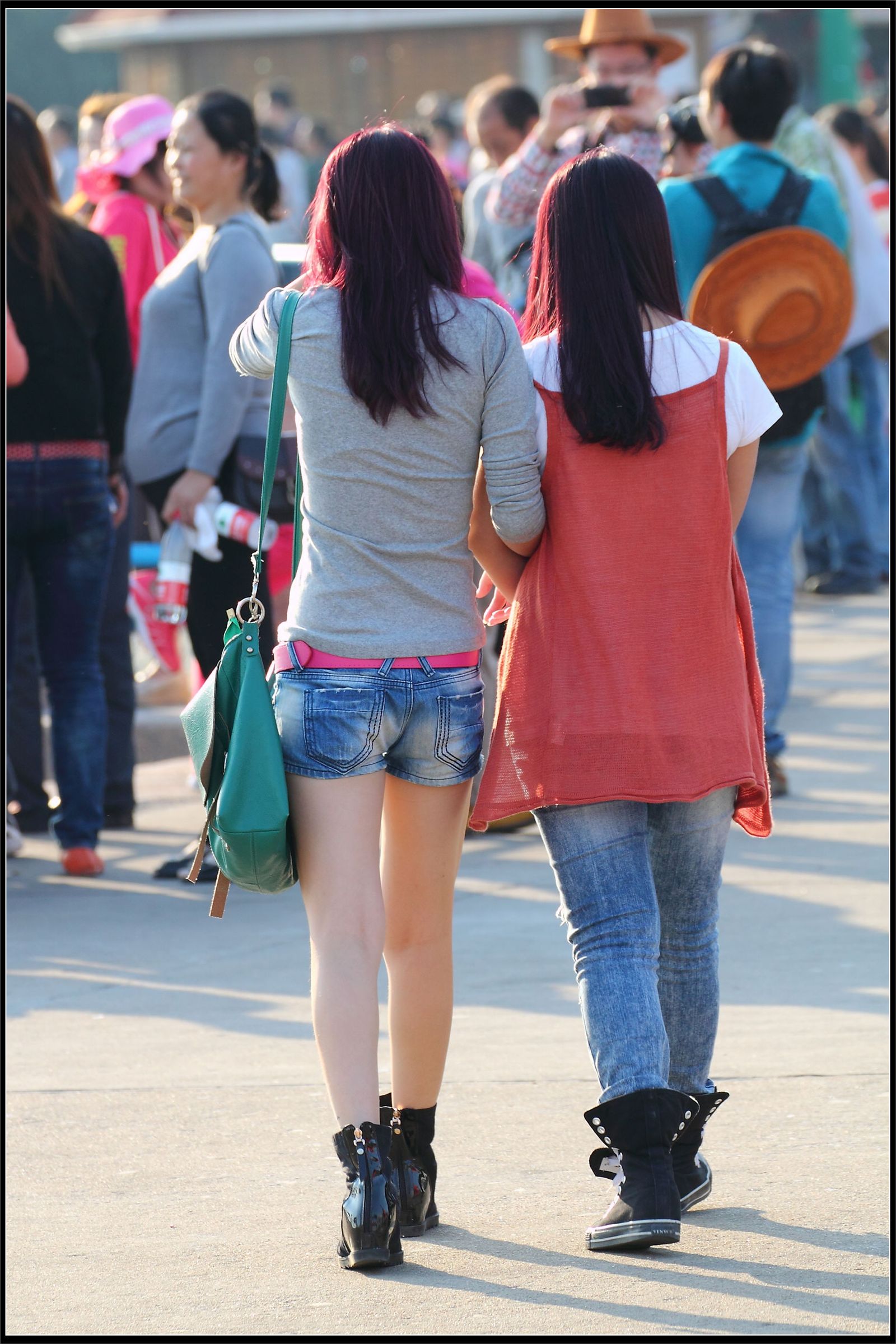 第一大道步行街中年女人牛仔热裤极品美腿街拍图片