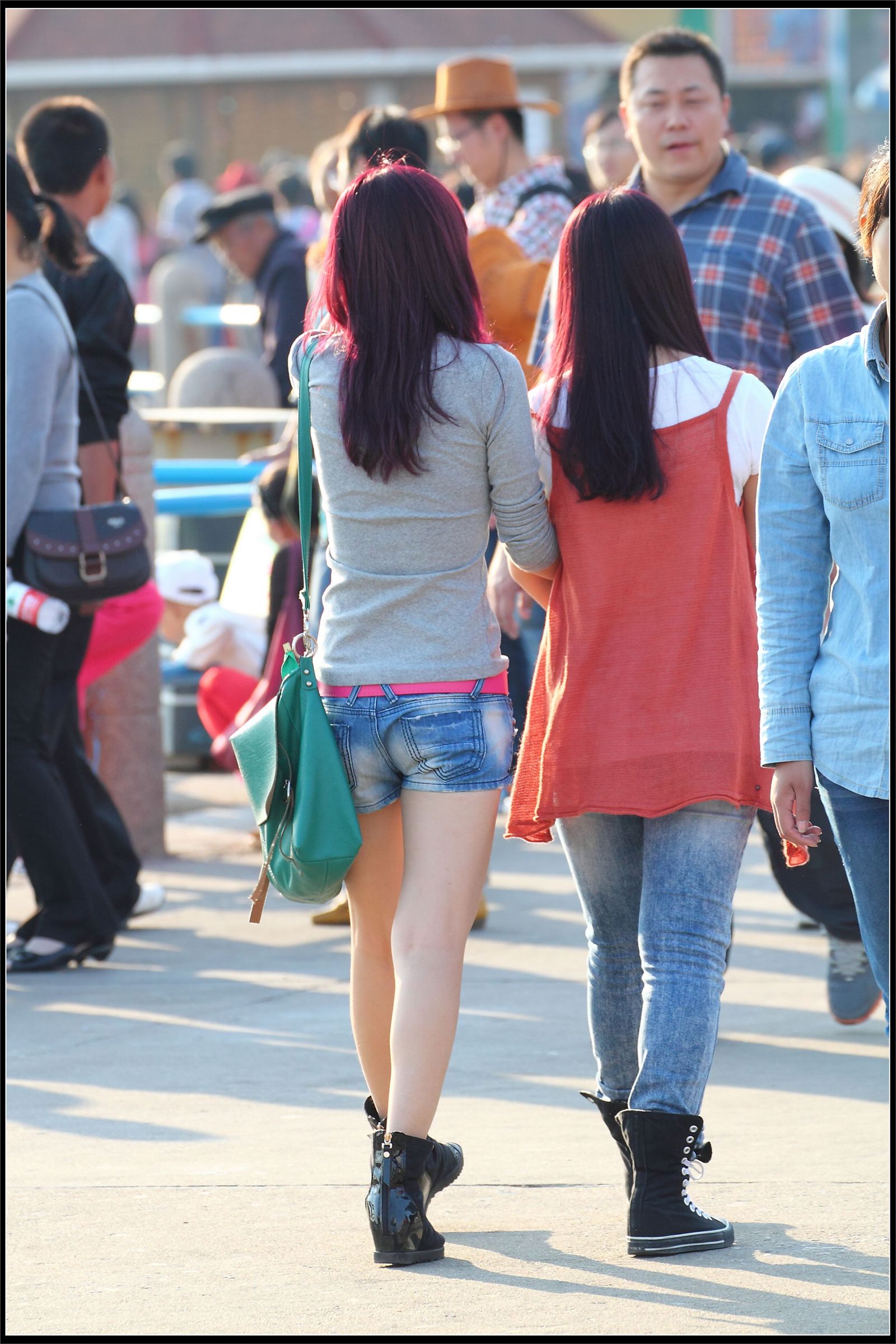 第一大道步行街中年女人牛仔热裤极品美腿街拍图片
