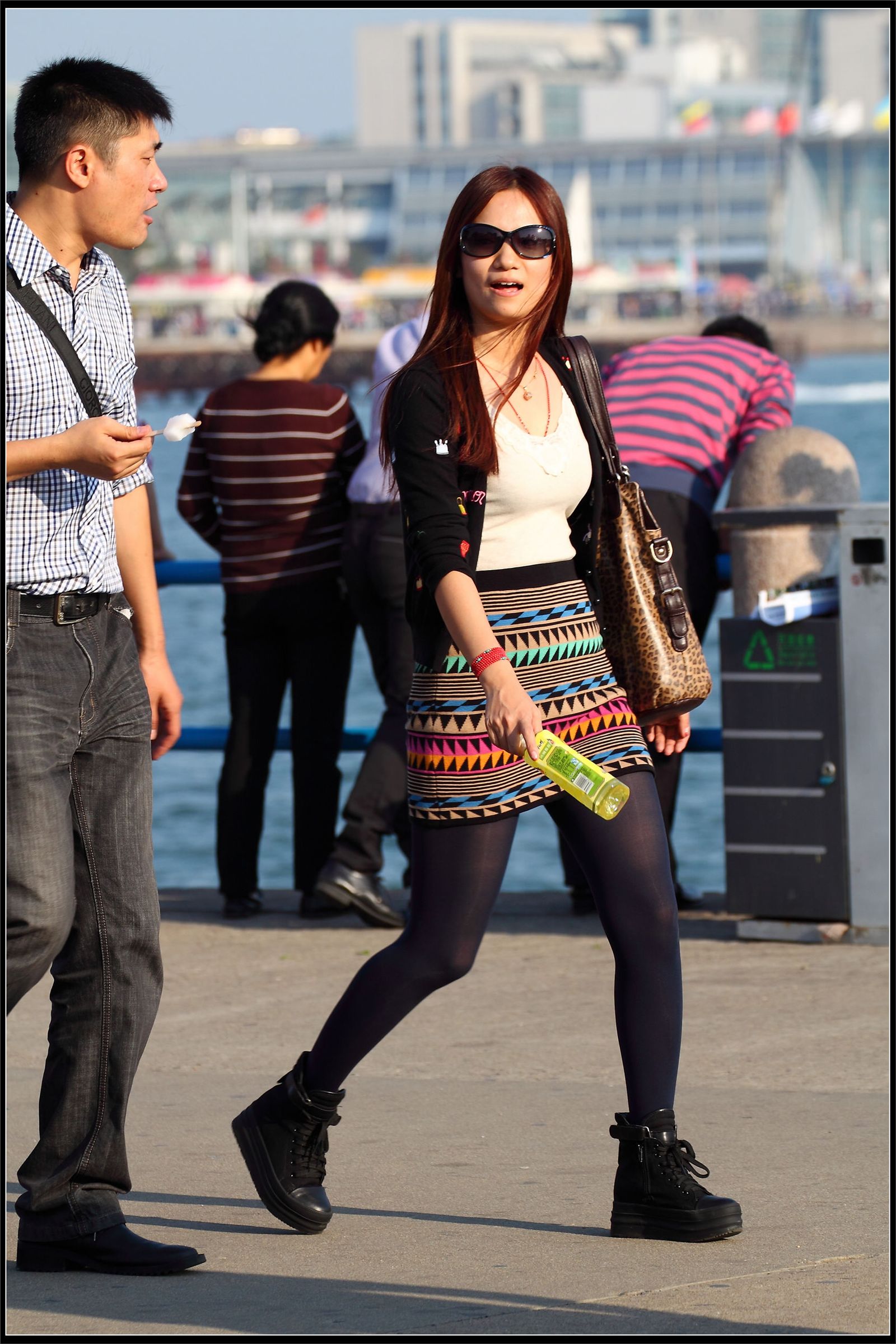 制服美女性感短裙美腿翘臀丰满身材饭店街拍图片