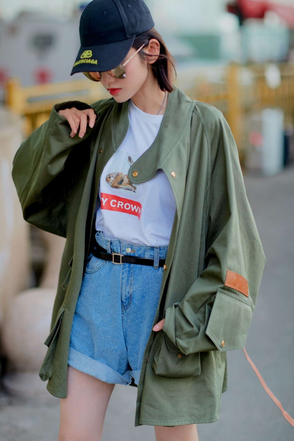 时尚美女唐艺昕牛仔热裤街拍美腿养眼生活照图片
