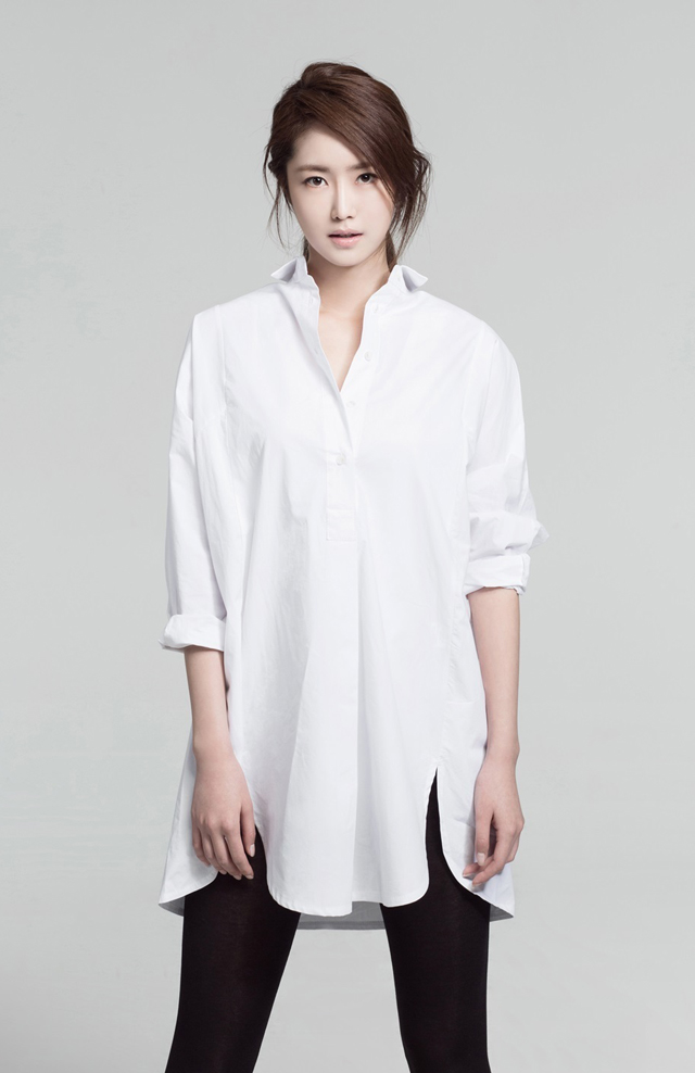 蓝色衬衣美女半露香肩大胆诱惑写真