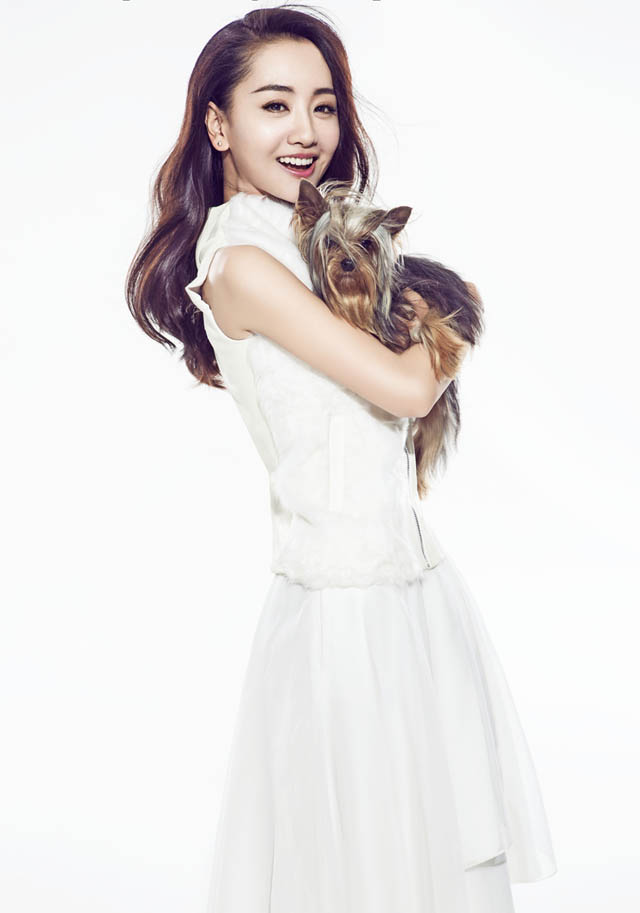 杨蓉抱萌宠拍摄写真大展甜美笑容