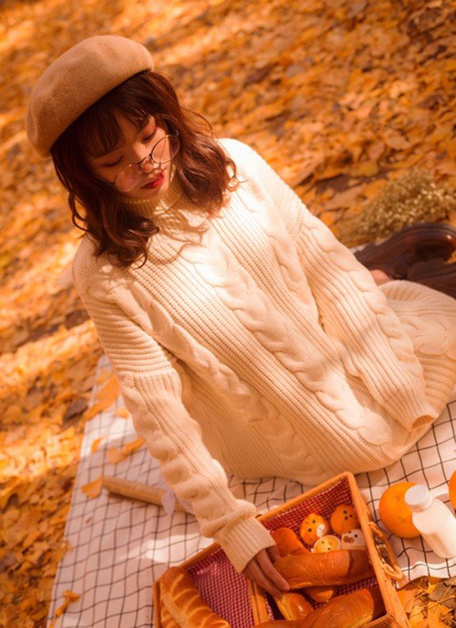 日系混搭风粉蓝撞色亚洲成熟女人天台写真