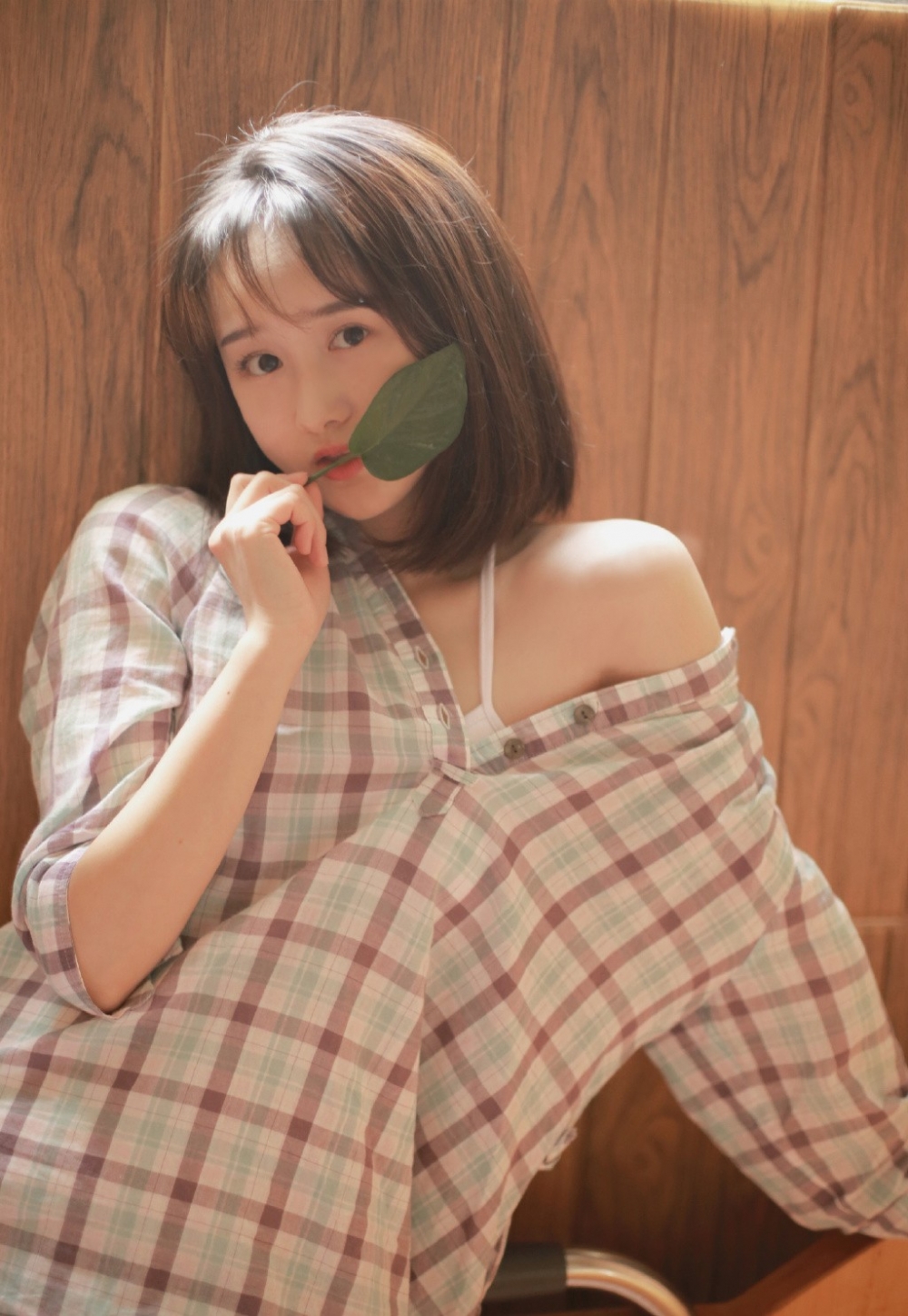 短发美女蕾丝吊带甜美笑容写真精选图片