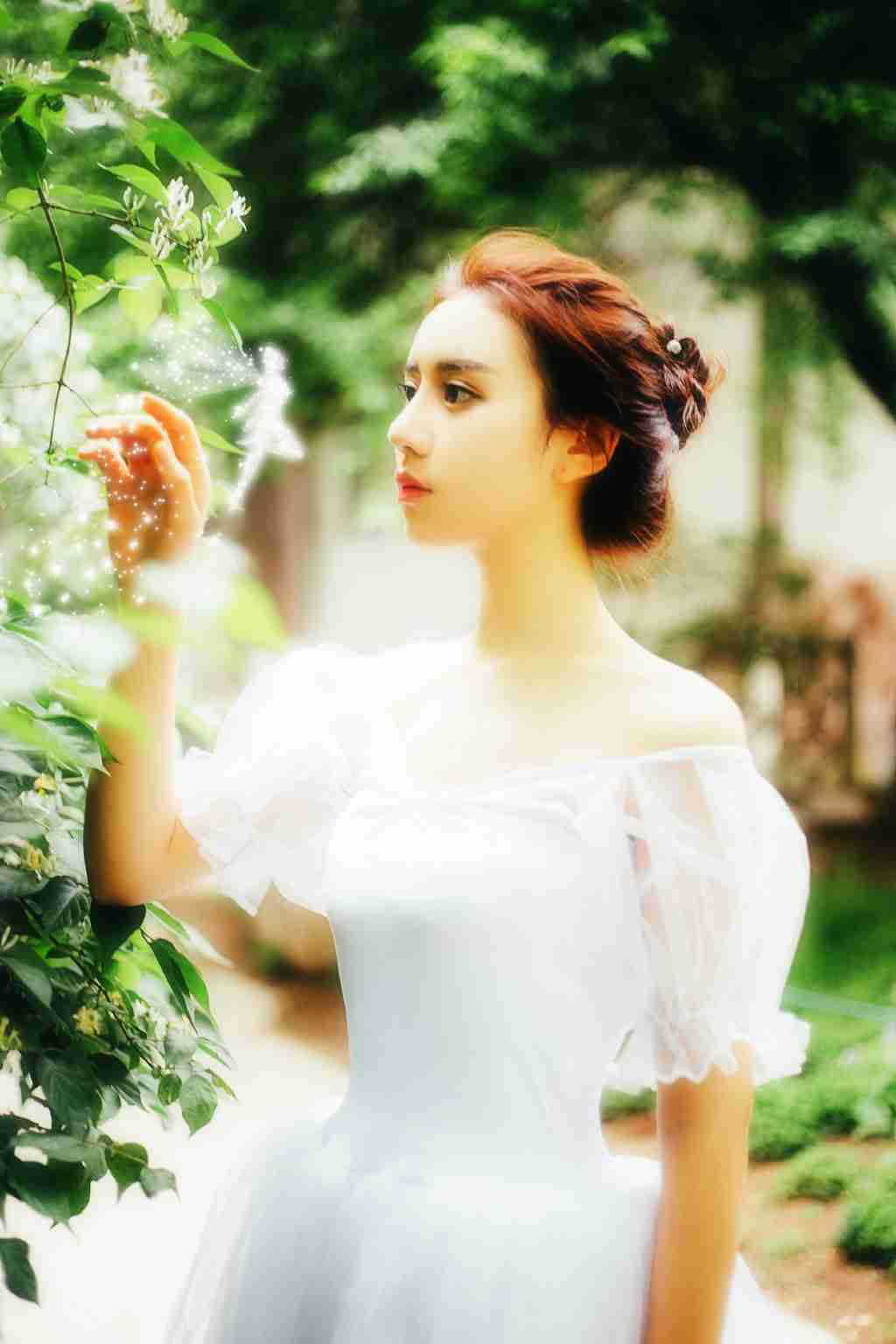 陈乔恩白皙锁骨香肩拖地白纱礼服惊艳图片