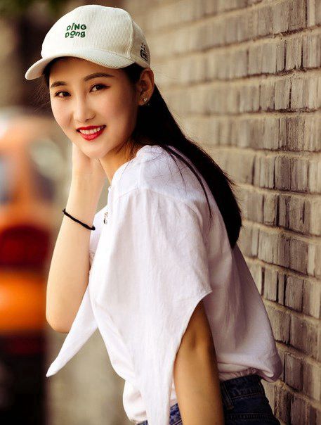 长发美女蓝白拼接短裙白嫩皮肤性感写真图片
