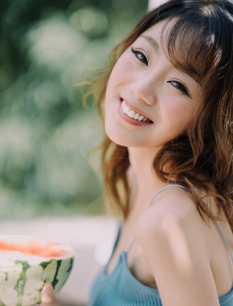 笑容明媚的单眼皮美女蕾丝吊带艺术写真美图