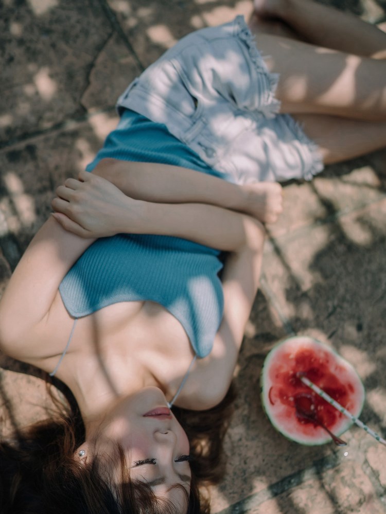 笑容明媚的单眼皮美女蕾丝吊带艺术写真美图