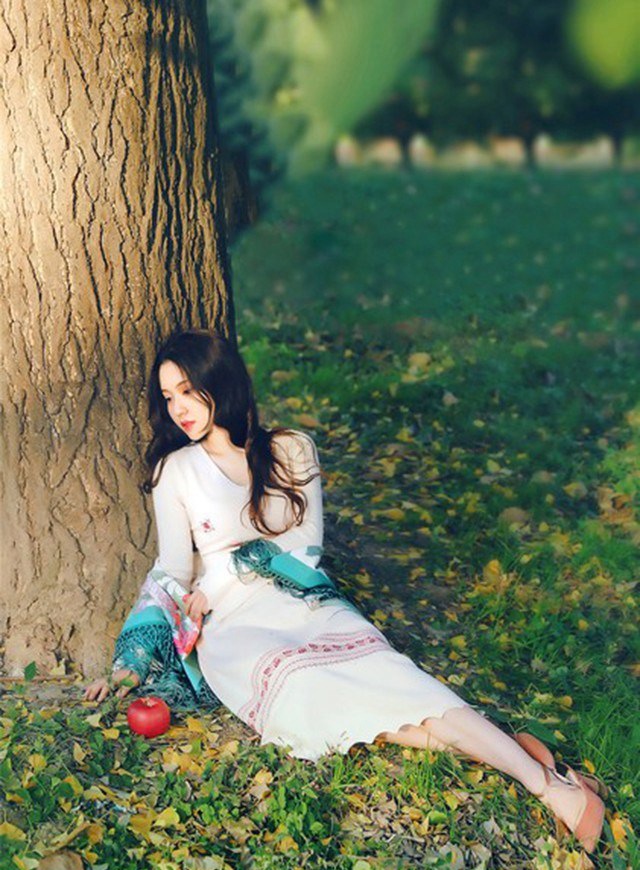 李一桐仙气飘飘的蕾丝纱裙暖秋森林写真大片