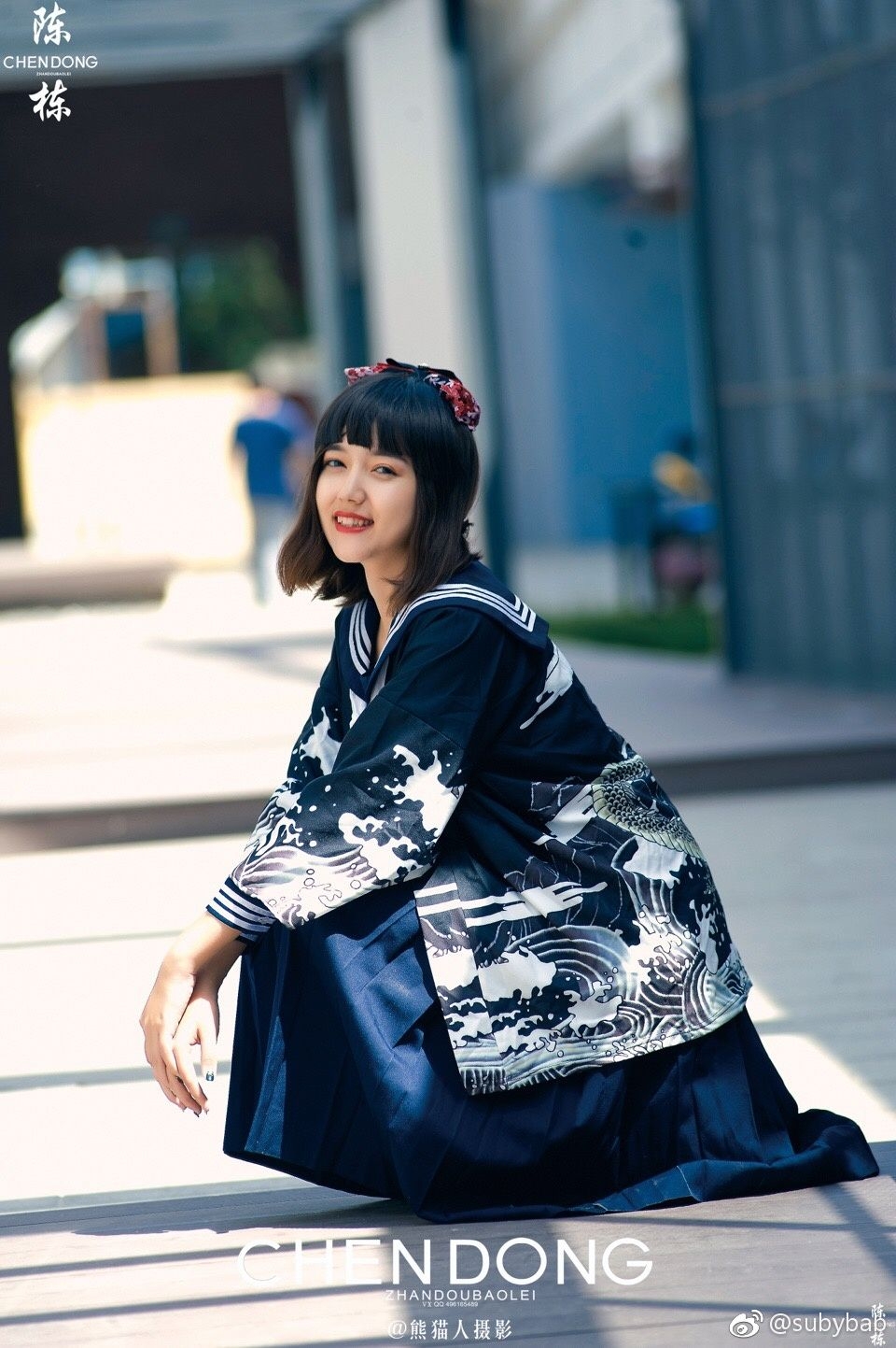 清纯美女黑色JK制服百褶裙甜美可爱写真图片