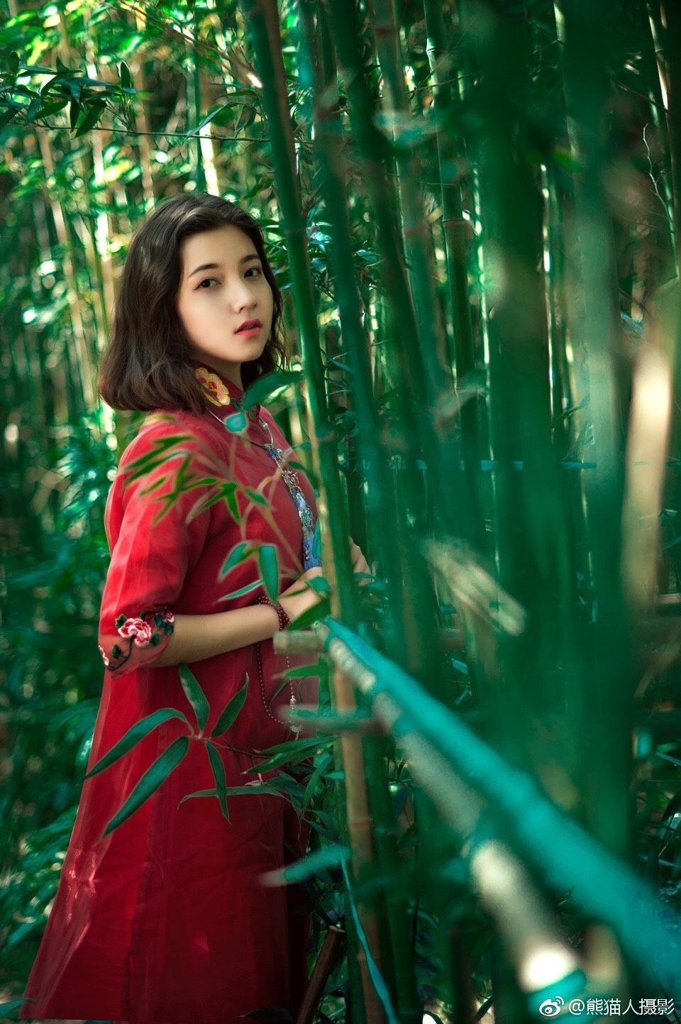 港风清纯美女蓝色长裙复古魅力艺术图片