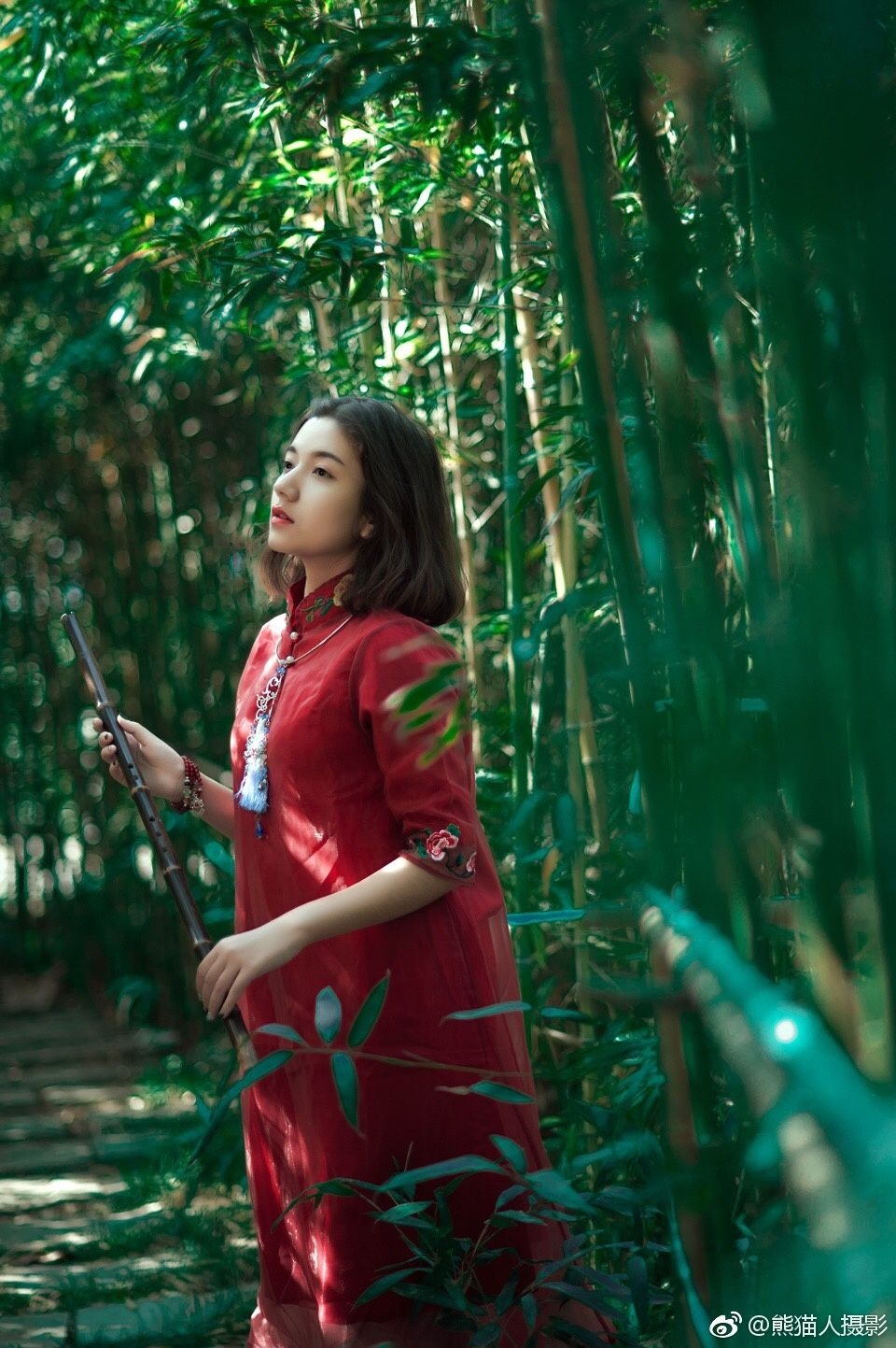 港风清纯美女蓝色长裙复古魅力艺术图片