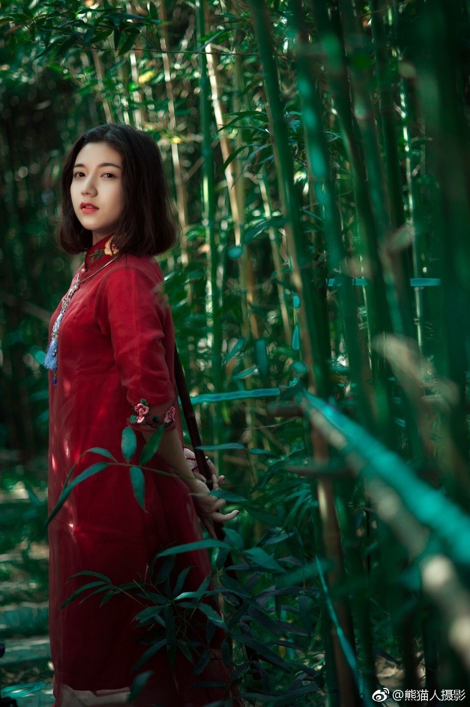 港风清纯美女蓝色长裙复古魅力艺术图片