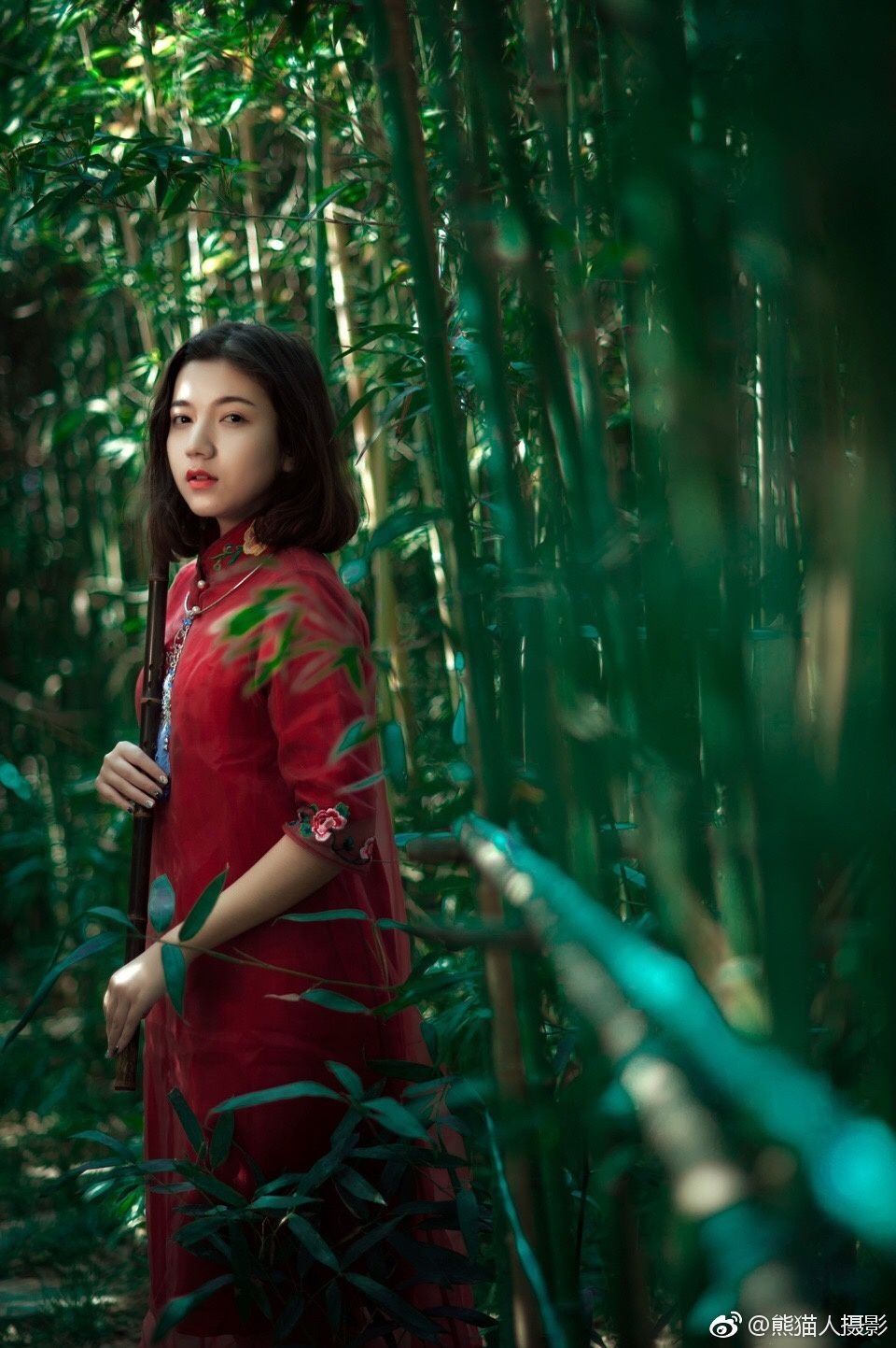 港风清纯美女蓝色长裙复古魅力艺术图片