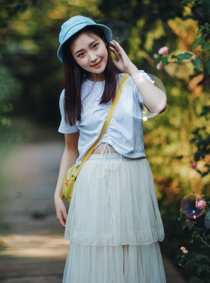 港风清纯美女蓝色长裙复古魅力艺术图片