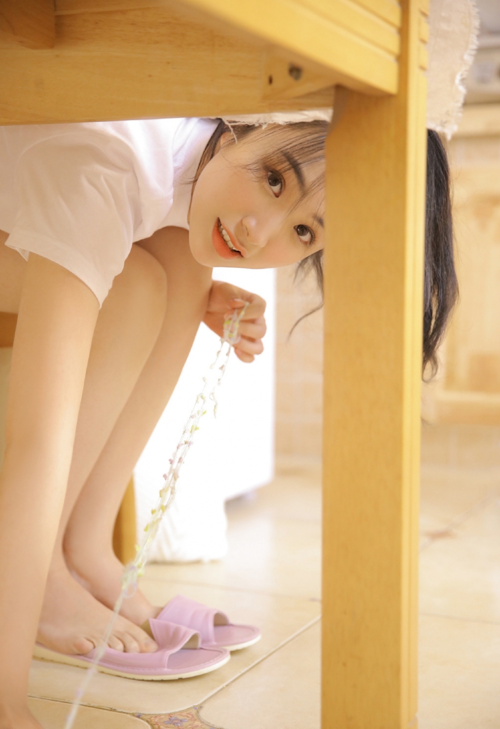 粉嫩小女生吊带超短裤居家生活照