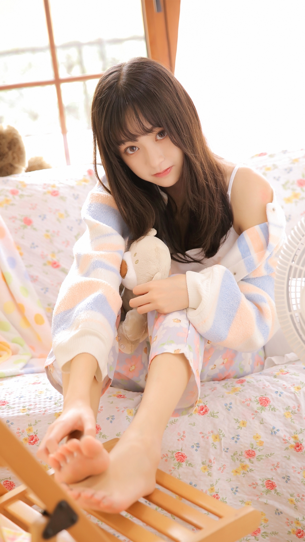 娃娃脸萌妹子白丝美腿纤细笔直床上写真