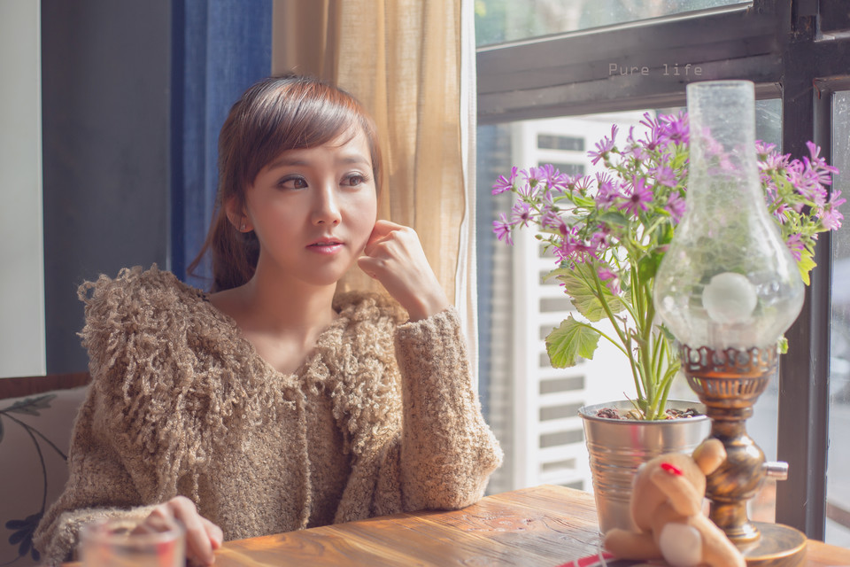 清透素颜裸妆的大学校花黄色蕾丝背心写真集