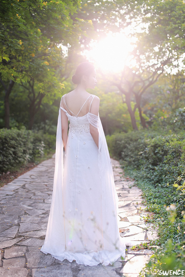 谭松韵白色花朵婚纱裙户外梦幻写真
