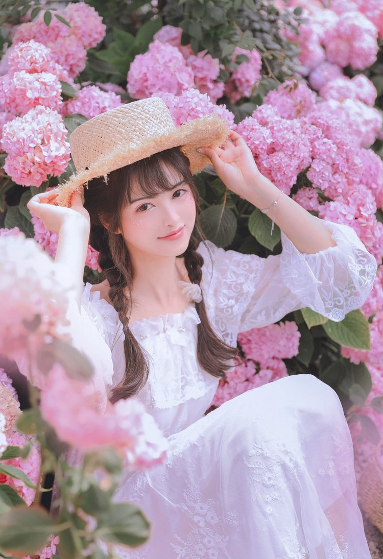 谭松韵白色花朵婚纱裙户外梦幻写真