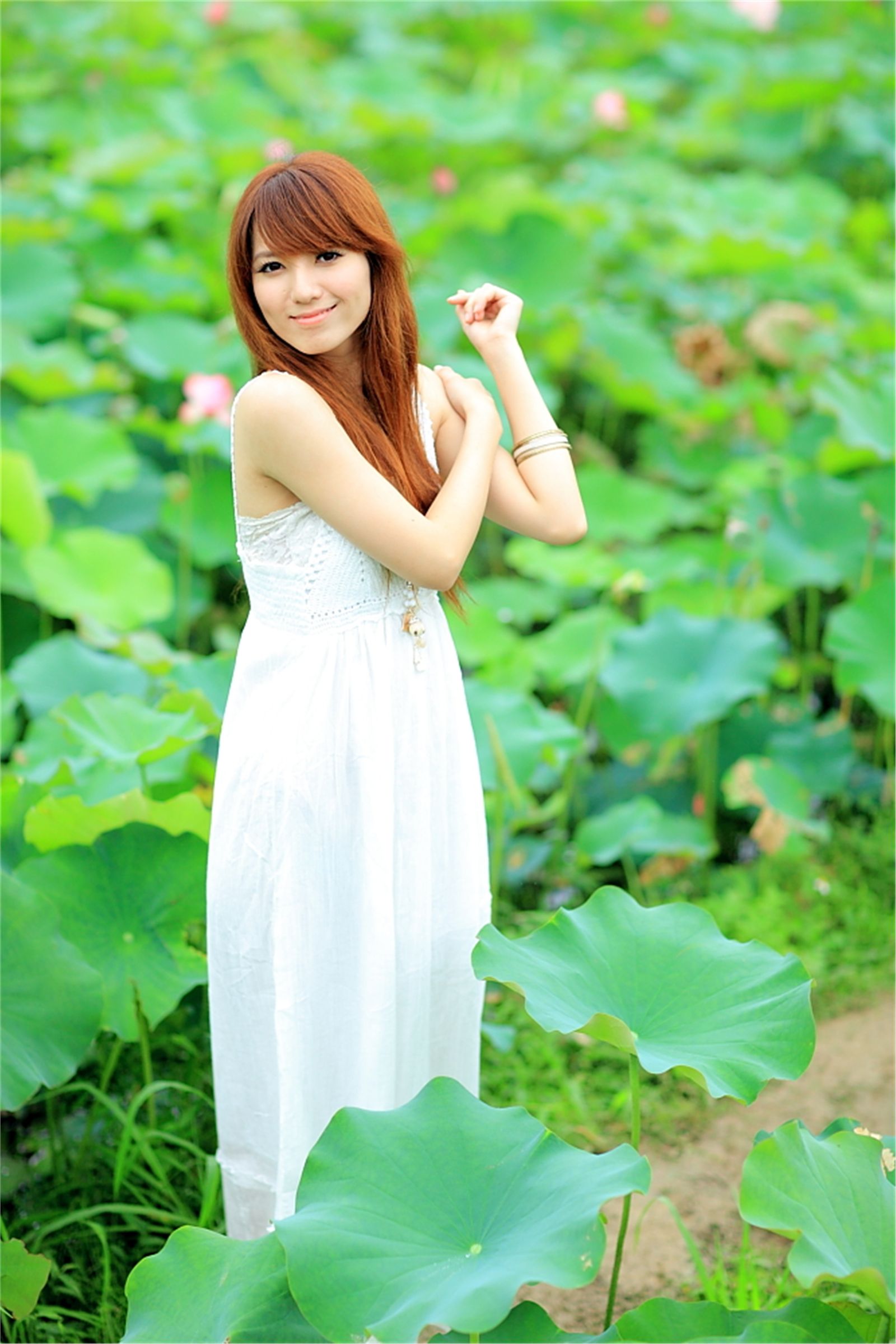 谭松韵白色花朵婚纱裙户外梦幻写真