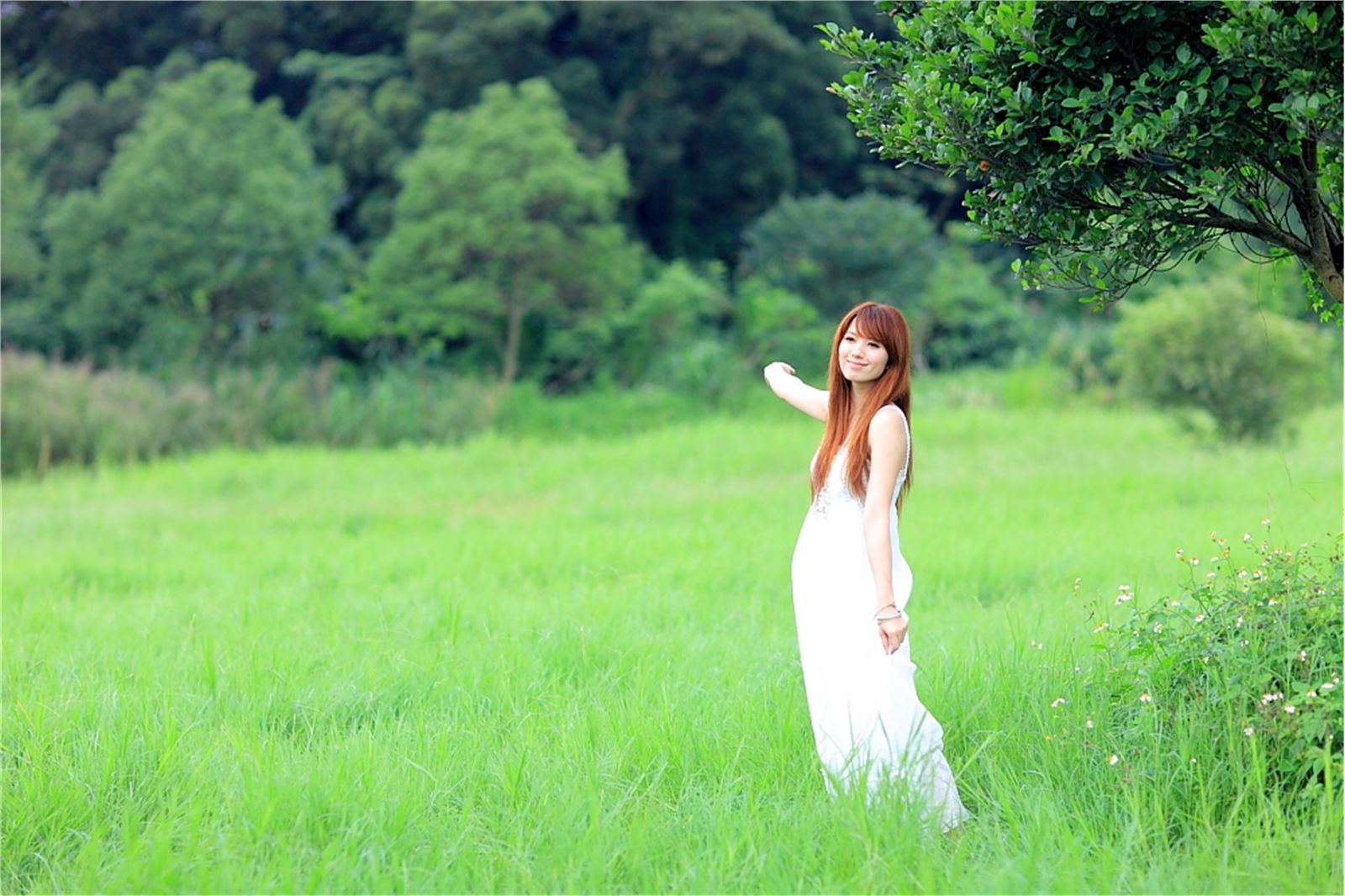 谭松韵白色花朵婚纱裙户外梦幻写真