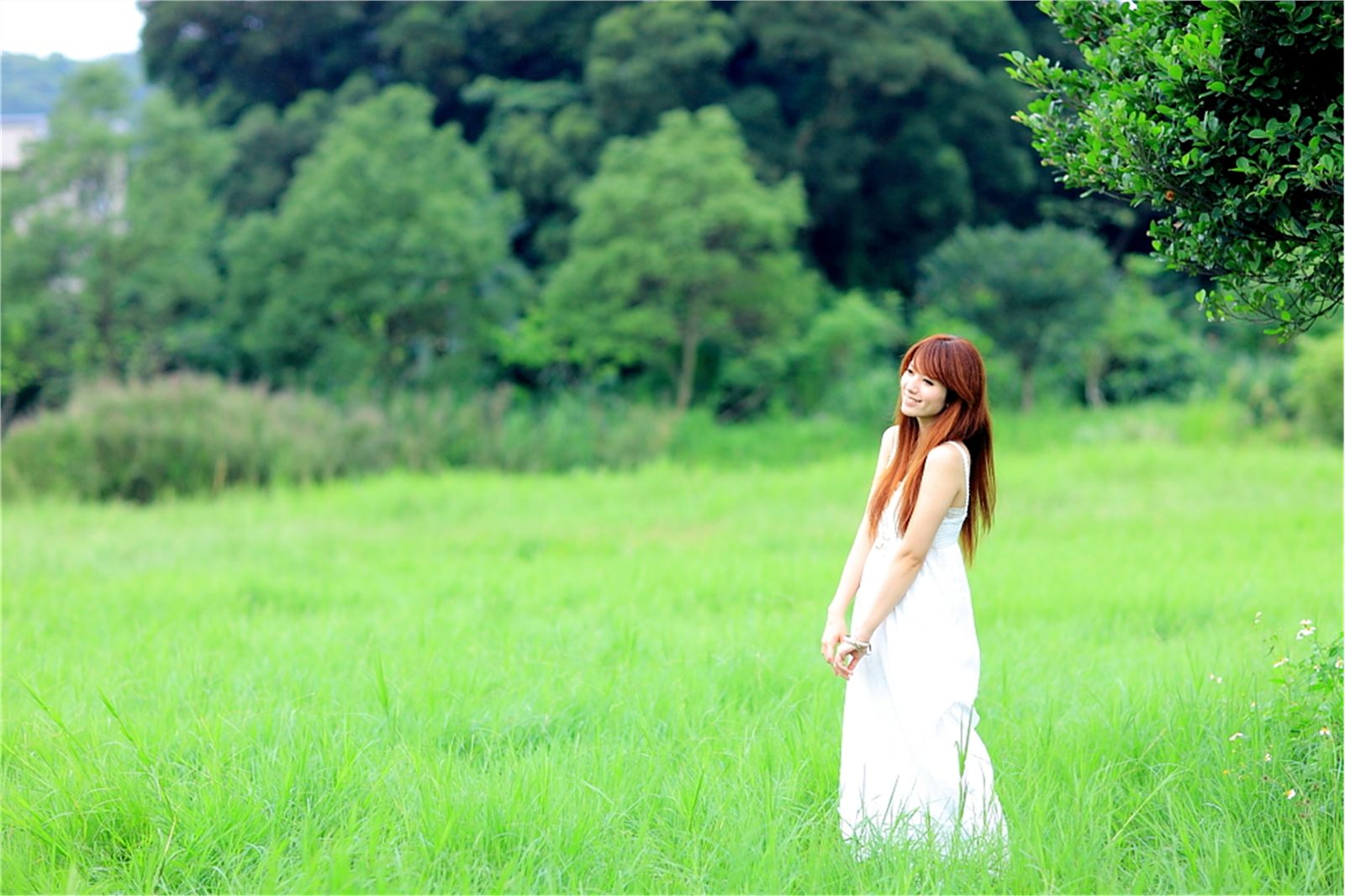谭松韵白色花朵婚纱裙户外梦幻写真