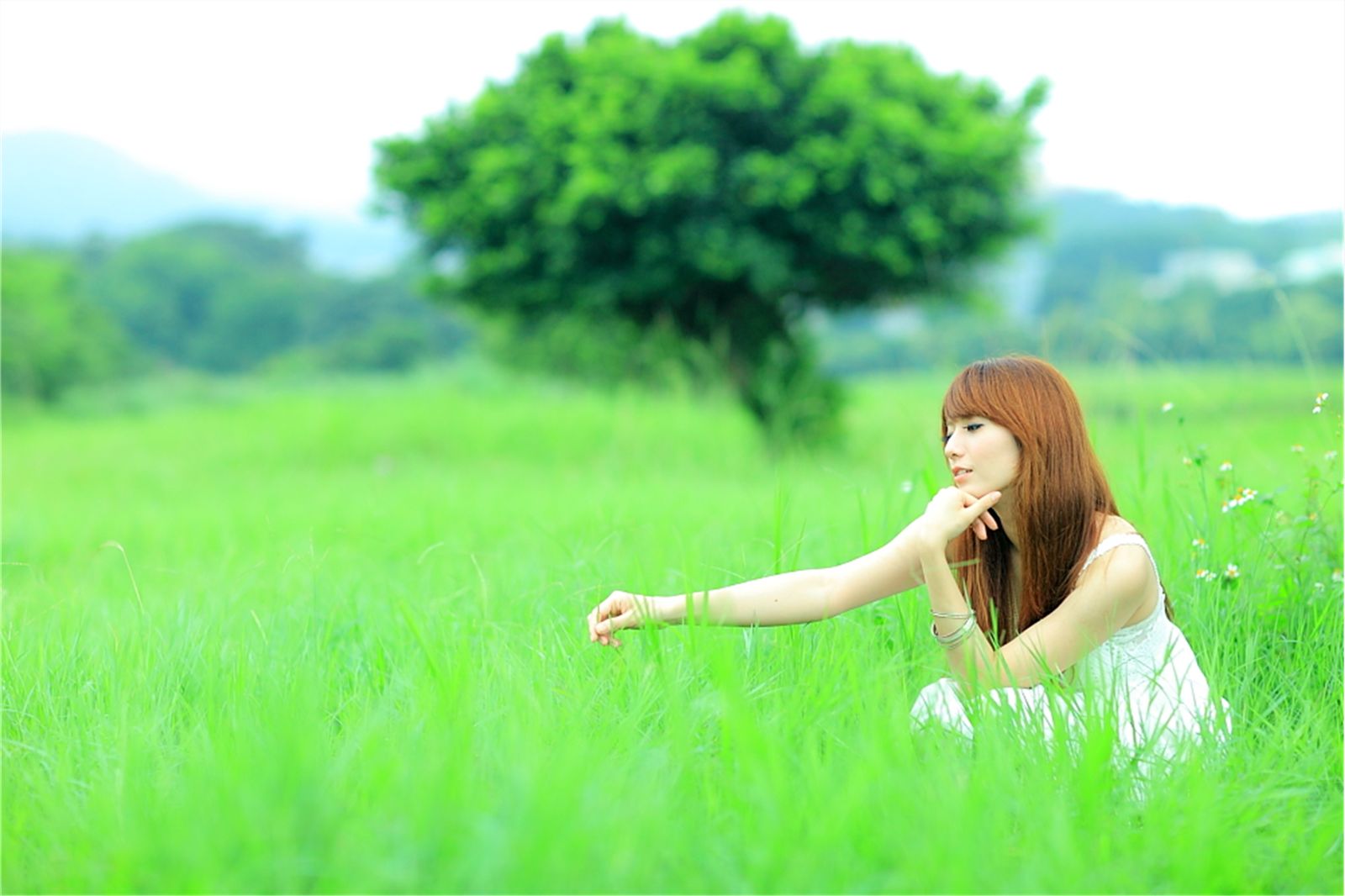谭松韵白色花朵婚纱裙户外梦幻写真