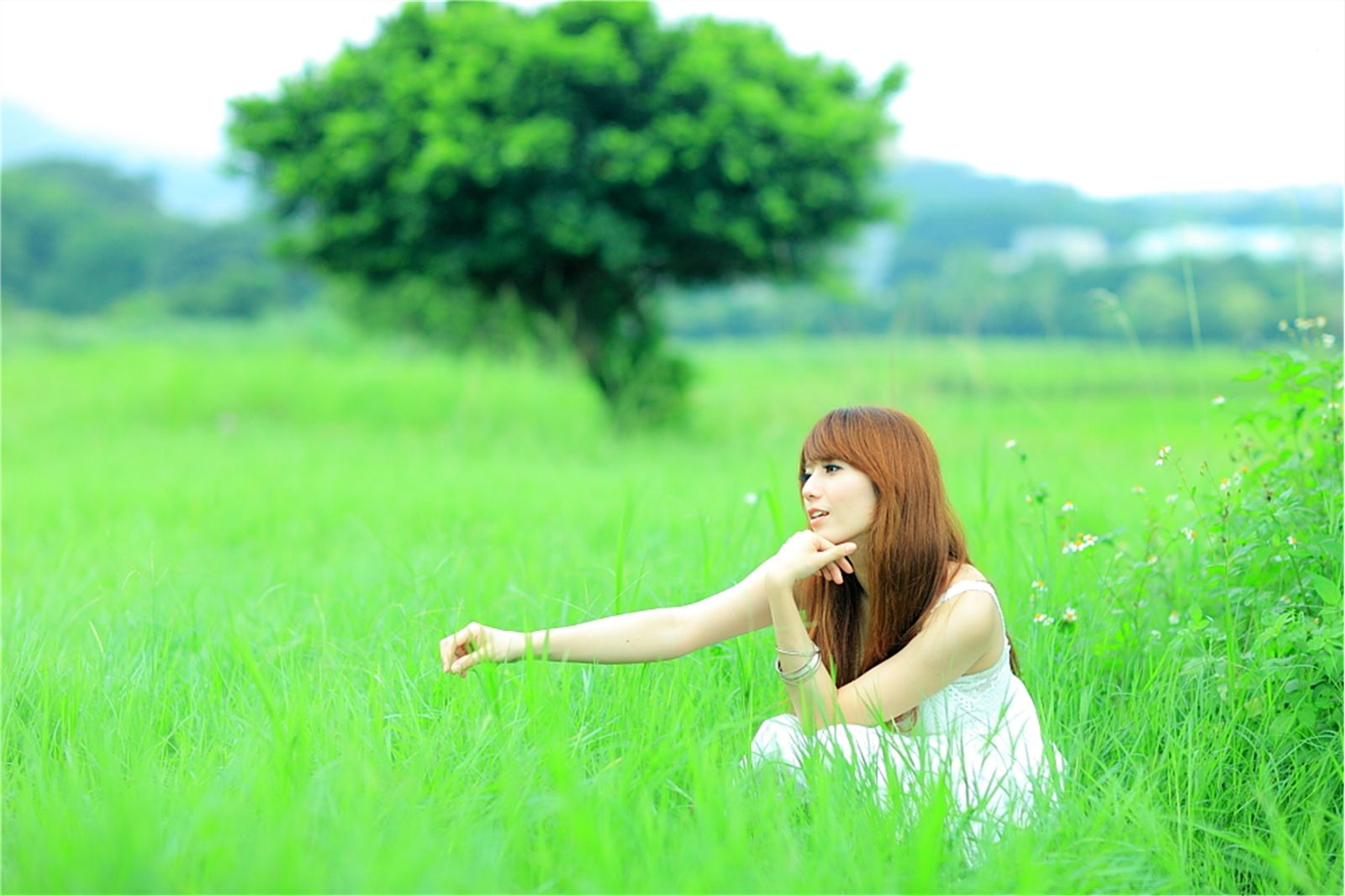 谭松韵白色花朵婚纱裙户外梦幻写真