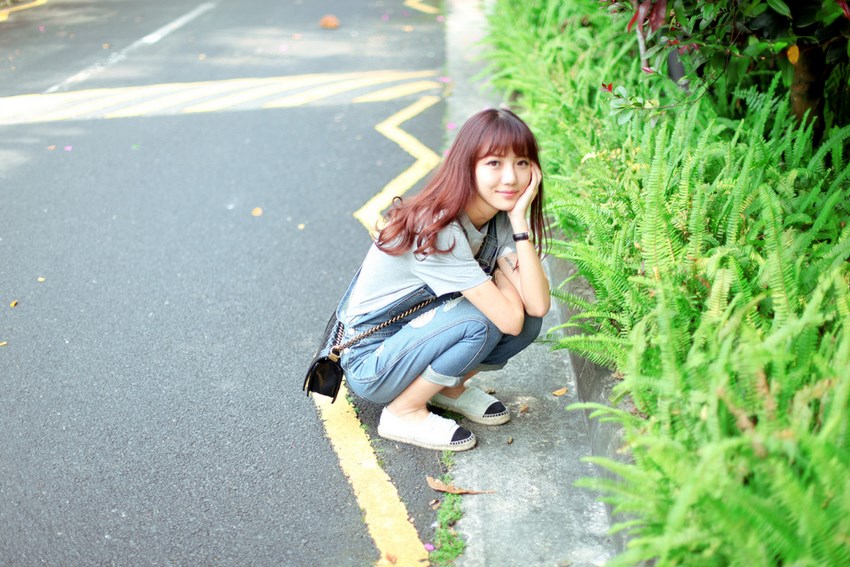 > 牛仔背带裤女孩户外清纯唯美图片查看