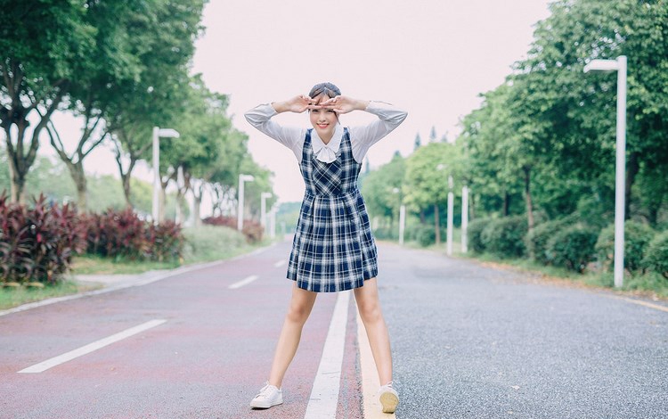美女大学生短裙黑丝制服诱惑户外