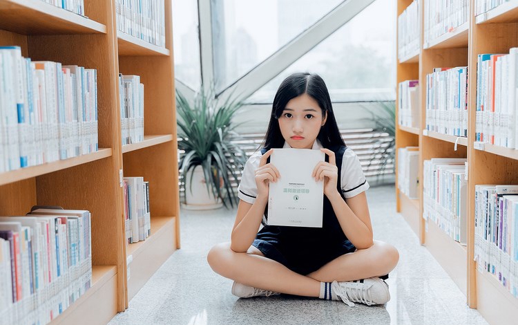 大学校花JK制服图书馆内甜美风写真摄影图片