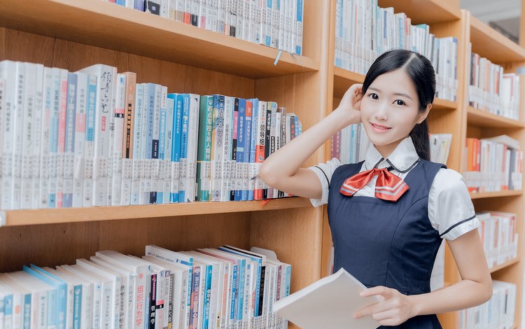 大学校花JK制服图书馆内甜美风写真摄影图片