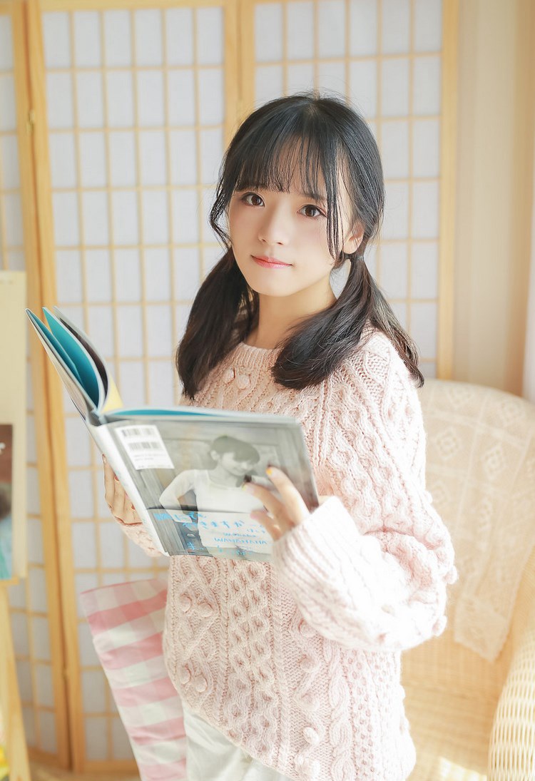 酒窝少女粉色发带糖心诱惑清新写真热图