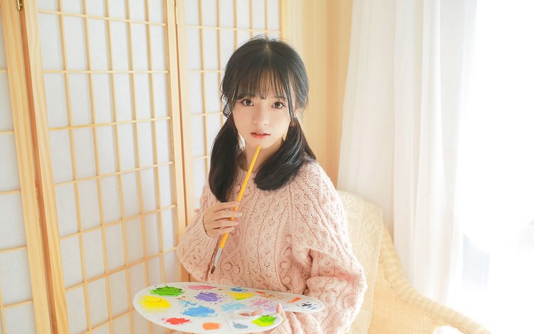 酒窝少女粉色发带糖心诱惑清新写真热图