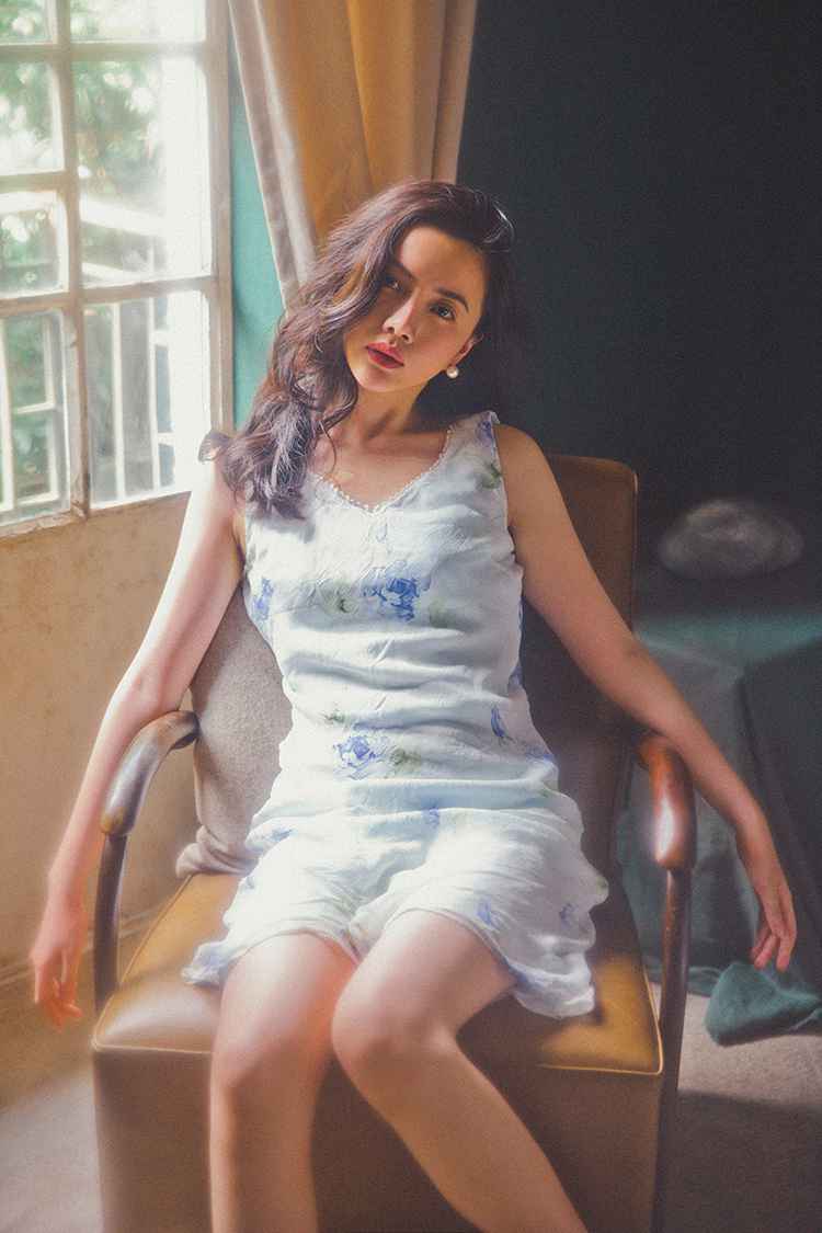 红唇卷发美女御姐低胸吊裙傲人上围性感写真