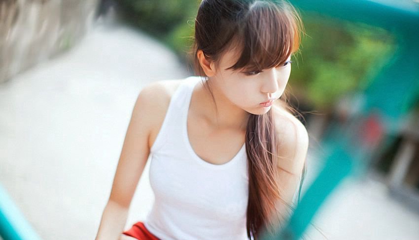 白色的高腰背心搭配紧身牛仔热裤美女图片