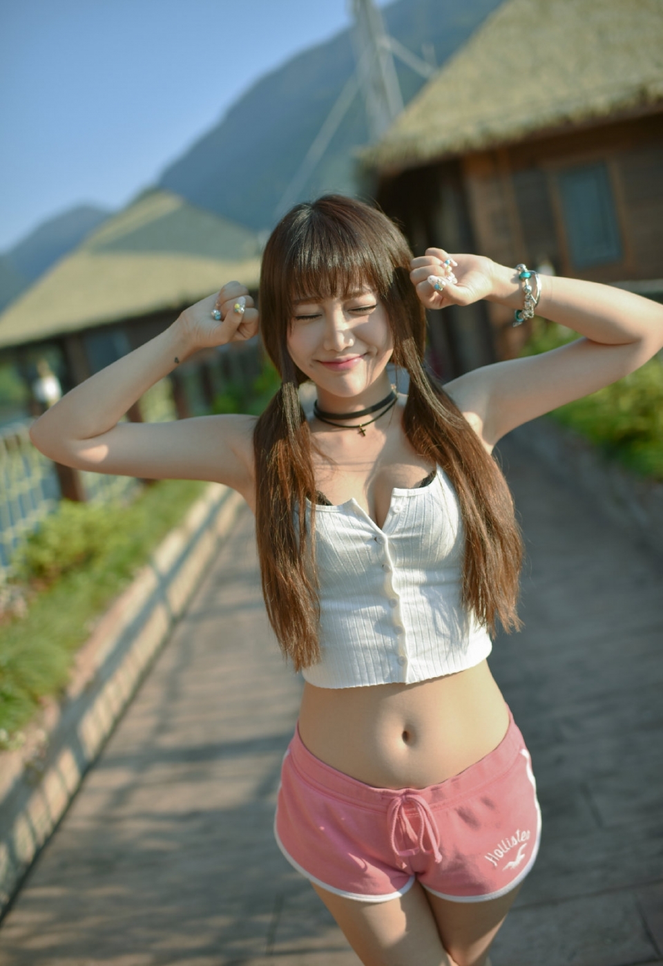 清纯俏佳人吊带热裤肤若凝脂私房照